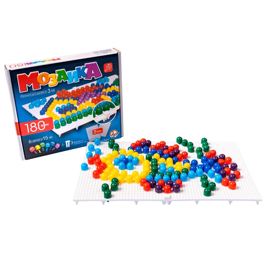 Набор цветной мозаики, состоящий сразу из двух прямоугольных полей, которые можно соединить вместе, а так же 180 фишек шести разных цветов. С такой мозаикой можно создать картинки еще большего размера и более интересные по содержанию. Диаметр фишек - 1,5 см, и они очень удобны для детской руки. Это отличная игра, предназначенная для развития мелкой моторики, воображения и изучения цветов.