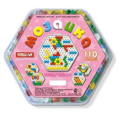 Мозаика "Stellar" - это яркая и увлекательная развивающая игра. Мозаика включает в себя игровое поле, которое также является контейнером для фишек, и много разноцветных выпуклых элементов, при помощи которых ребенок сможет создавать цветные картинки. Для этого ему нужно лишь вставлять фишки в плату, руководствуясь изображениями на коробке или собственной фантазией. Элементы выполнены из пластика красного, желтого, зеленого и синего цветов. Эта универсальная мозаика раскрывает перед ребенком неограниченные возможности моделирования и создания собственных шедевров.