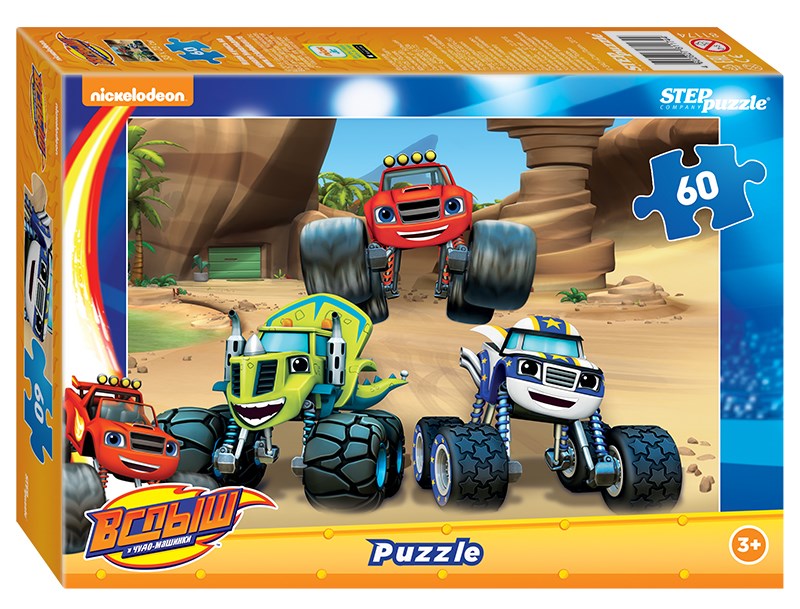 Пазл «Вспыш и чудо-машинки» состоит из 60 деталей. На картинке изображен Вспыш со своими друзьями Зэгом и Смельчаком. Кажется, они собрались погонять по пустыне?