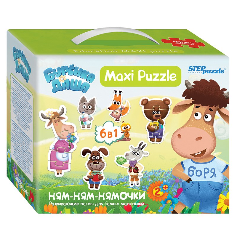Развивающий набор пазлов 6в1 "Буренка Даша" для самых маленьких детей. Содержит 6 фигурных пазлов в виде героев мультфильма. Фигурки состоят из разного количества элементов.