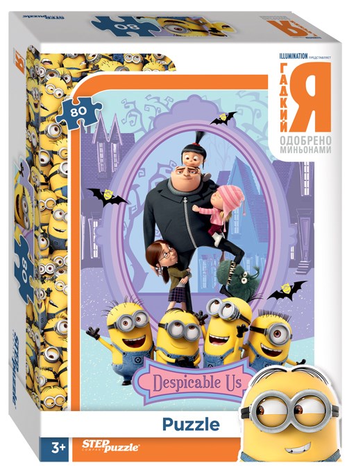 Пазл «Гадкий Я» состоит из 80 деталей. Его картинки повторяют сцены из одноименного мультфильма. Тут есть Миньоны, Грю, Агнес и многие другие персонажи.