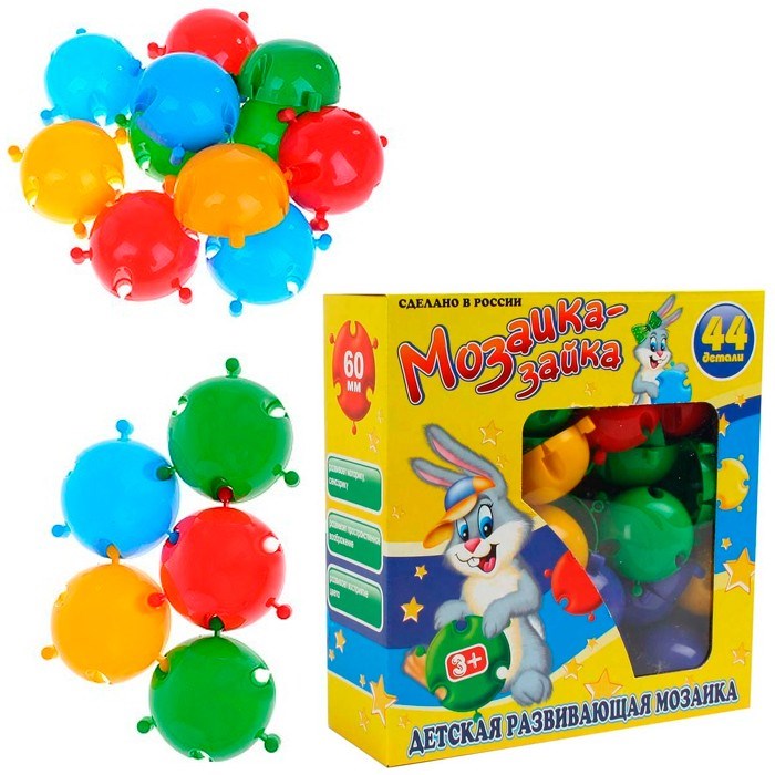 Мозаика - зайка способствует развитию моторики и сенсорики, пространственного воображения и восприятию цвета. Отсутствие мелких деталей делает мозаику безопасной для самых маленьких, детали хорошо сцепляются друг с другом.