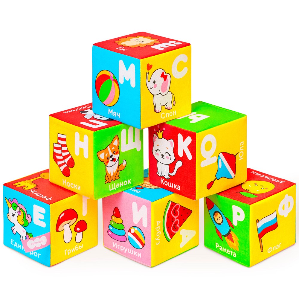 Кубики мягкие, выполнены из яркой ткани и плотного поролона.