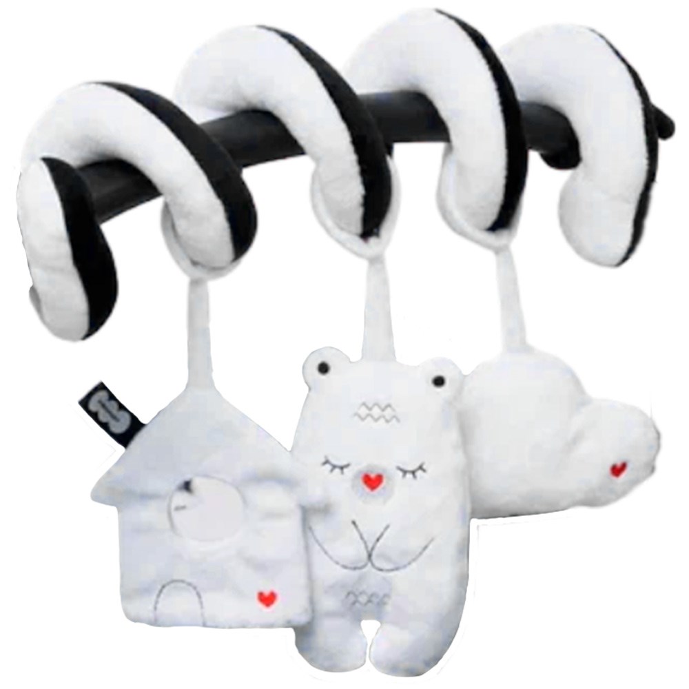 Разъемное кольцо позволяет прикрепить игрушку к автокреслу, кроватке или коляске.