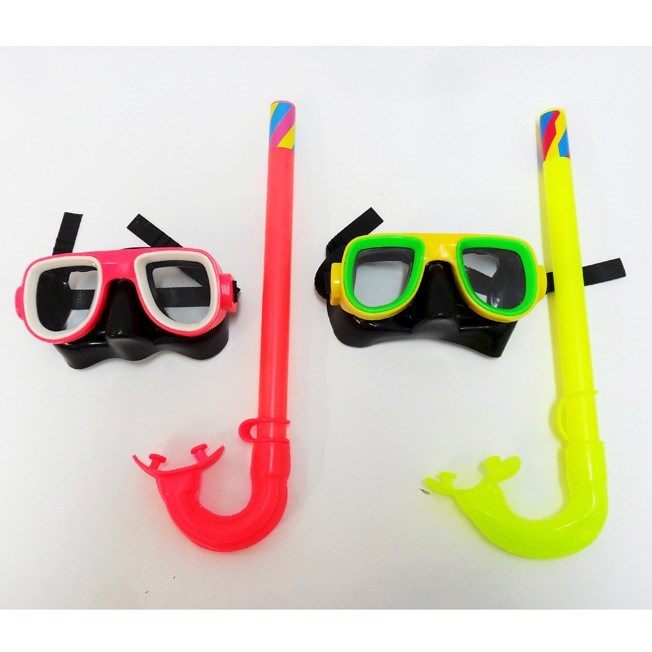 Набор для подводного плавания стоит из маски и трубки. Этот красивый атрибут для детей на пляже позволит отлично увидеть под водой красивые рельефы дна моря. Безопасные поликарбонатные линзы имеют специальное покрытие, предотвращающее запотевание. Ободок линз и прочные ремешки изготовлены из мягкого латекса, обеспечивающие плотное прилегание маски. Трубка имеет мягкий эластичный загубник и защитный наконечник от попадания воды.