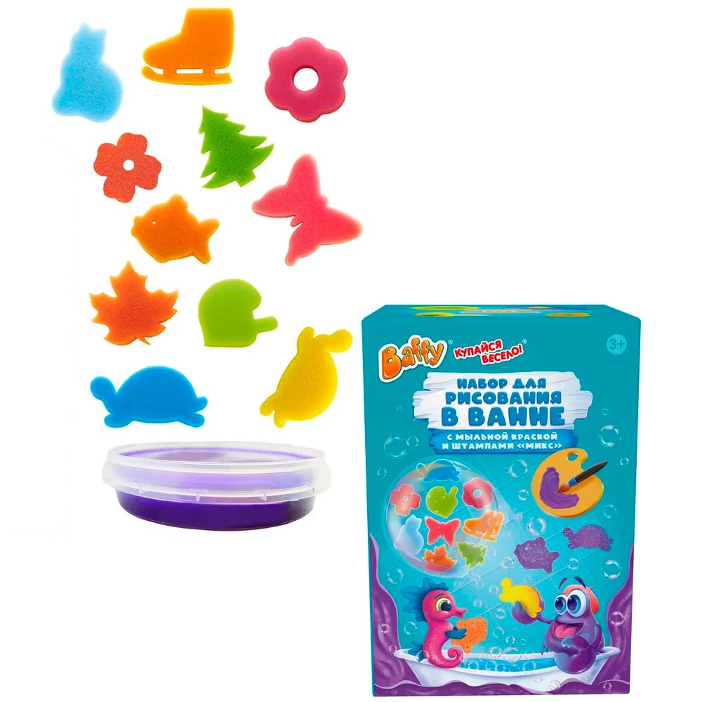 Купание в ванной превратится в увлекательную и творческую игру с помощью набора с мыльной краской и штампами.