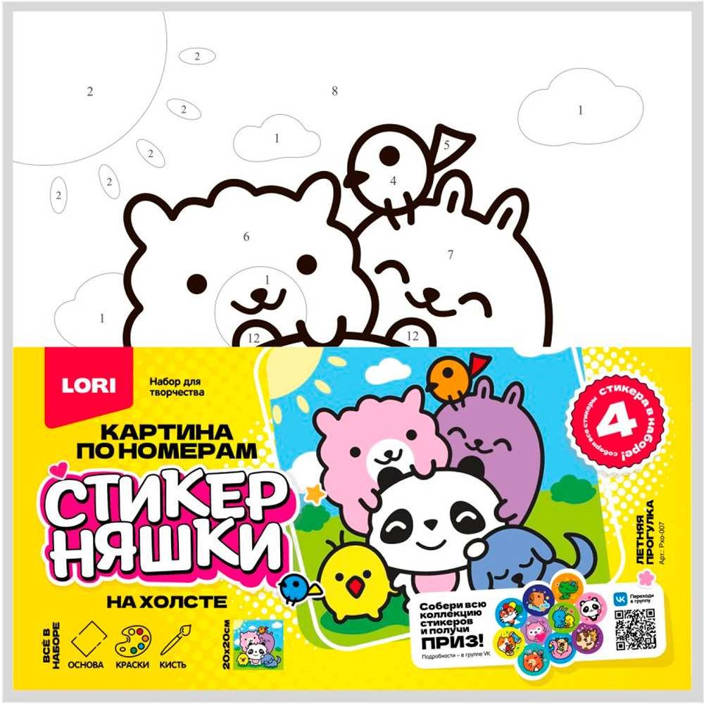 Набор Для Творчества Картина по номерам детская на подрамнике 20*20 см Стикерняшки "Летняя прогулка" Рхо-007 Lori