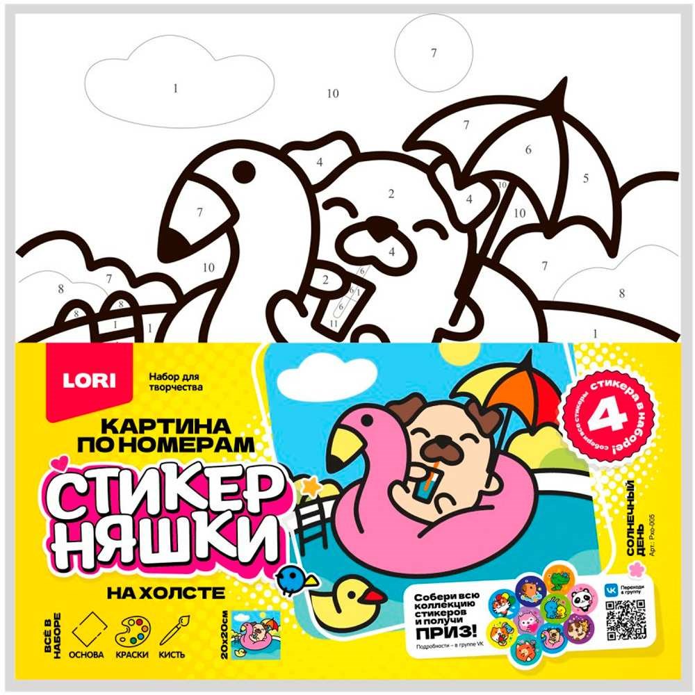Набор Для Творчества Картина по номерам детская на подрамнике 20*20 см Стикерняшки Солнечный день Рхо-005 Lori