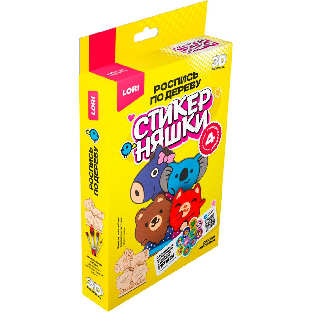 Набор для творчества Роспись по дереву.3D-раскраска Стикерняшки "Друзья-милашки" Фно-001 Lori