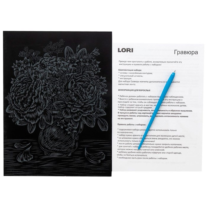 Набор для творчества Скретчинг 18*24 см Цветы "Пышные пионы" Гр-716