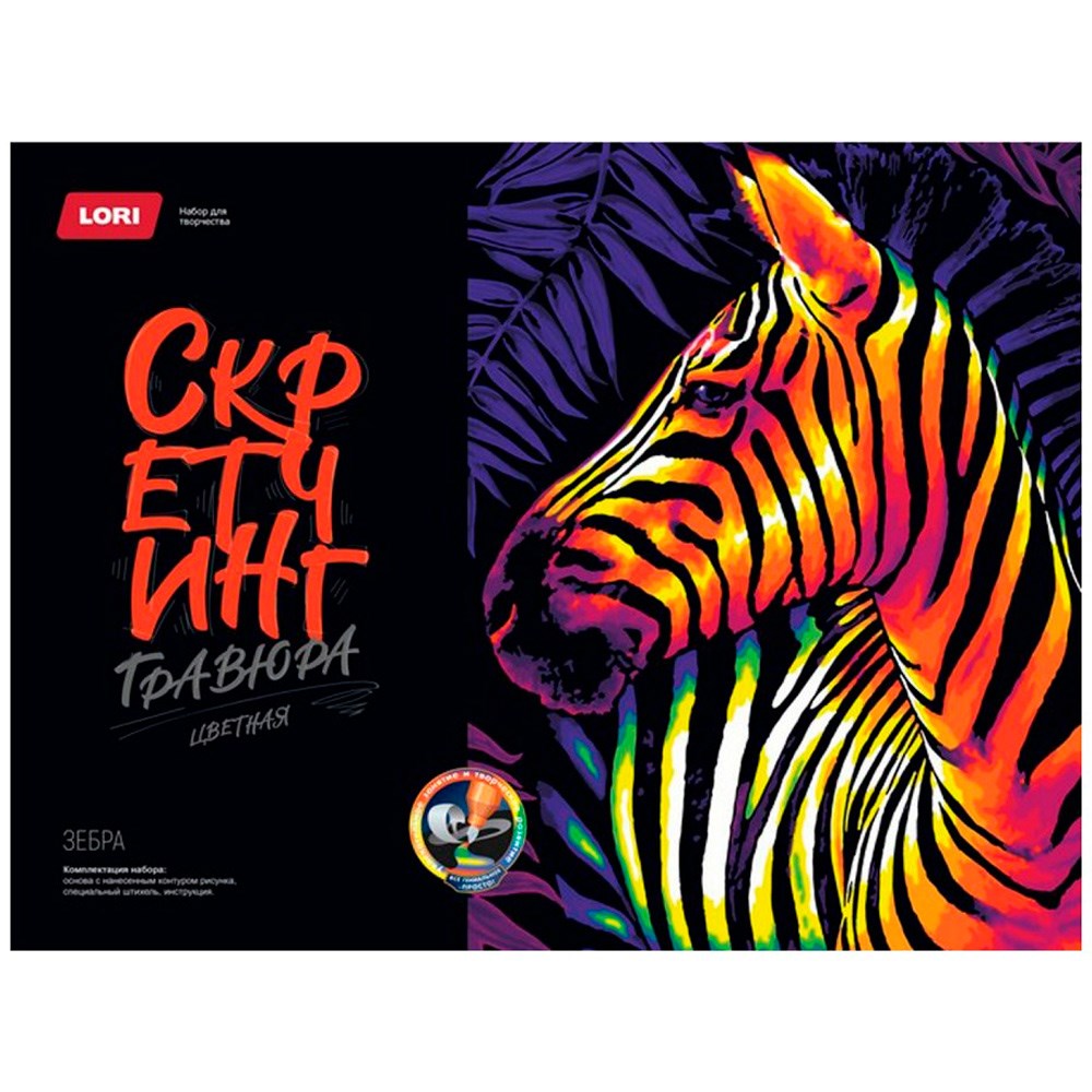 Набор для творчества «Скретчинг. Неоновые животные. Зебра» от бренда LORI понравится не только детям, но и взрослым.