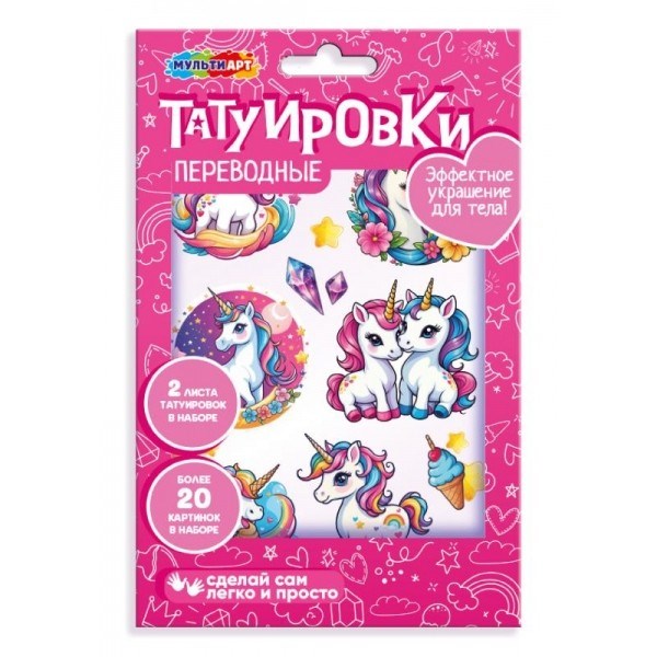 Набор для творчества – переводные татуировки «Единороги» ТМ «Мульти Арт» - эффектное украшение для тела!