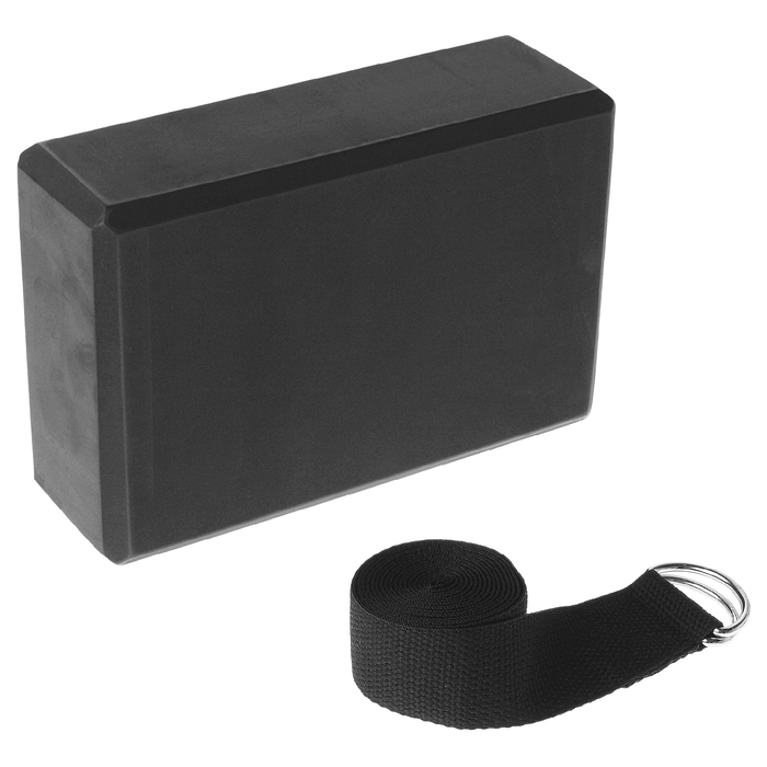 Набор для йоги: блок, ремень, цвет чёрный, уценка