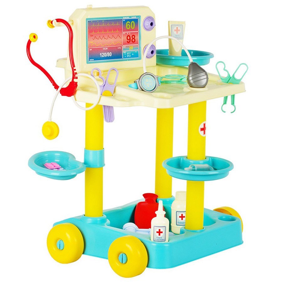 Игровой набор "Доктор" на тележке позволит мальчикам и девочкам представить себя настоящим врачом. С ним малыш будет лечить кукол и плюшевых медведей при помощи инструментов, входящих в комплект - стетоскопа, кардиографа, грелки, пилюль и других предметов, которые обычно используют доктора. Все элементы выполнены из качественного нетоксичного пластика, узнаваемы и реалистичны. Цвета представлены в ассортименте.