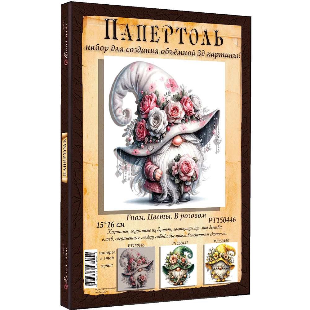 Набор ДТ Папертоль Гном цветы. В розовом 15*16см. РТ150446