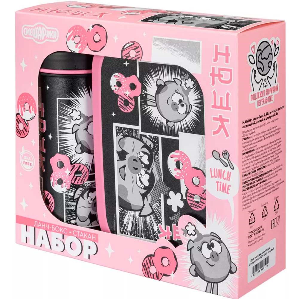 Набор:ланч-бокс 0,98л и стакан детский с крышкой петлей СМЕШАРИКИ 0,4л Розовый 431337905
