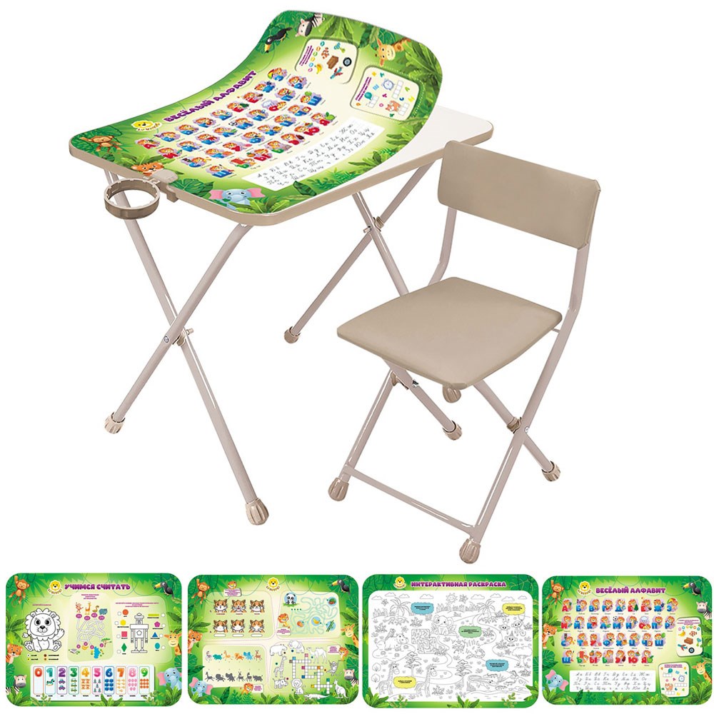 Комплектация: стол - 1 шт, стул - 1 шт, подстаканник - 1 шт, накладка на стол - 2 шт.