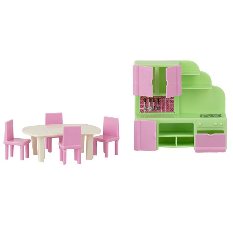 Мебельные наборы для разных комнат дополняют друг друга и позволяют девочке собрать и обставить свой собственный домик мечты для любимой куклы.