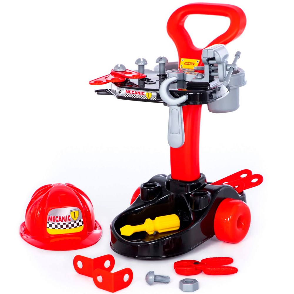 Отличный набор для маленького мастера, который позволит ребенку познакомиться с различными инструментами, узнать их название, назначение и принцип работы. В комплект входит столик с перфорированной поверхностью, тиски, а к столу винтами (4 шт.) и гайками (4 шт.) можно прикручивать пластины (8 шт.) при помощи отвертки и гаечного ключа. Также в комплект входит каска и щипцы. Цвета представлены в ассортименте.
