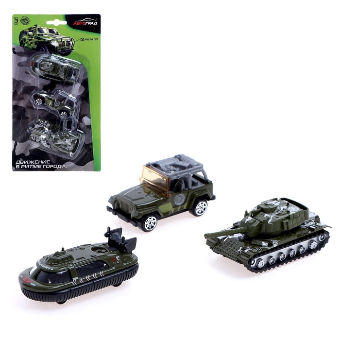 Набор металлических машин «Армия», 3 штуки, МИКС, уценка