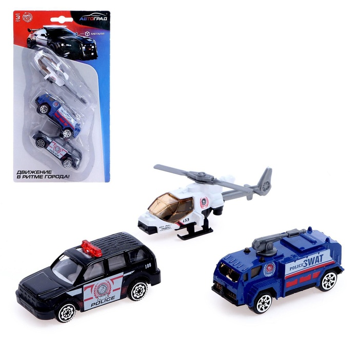 Набор металлических машин «Полиция», 3 штуки, МИКС, уценка