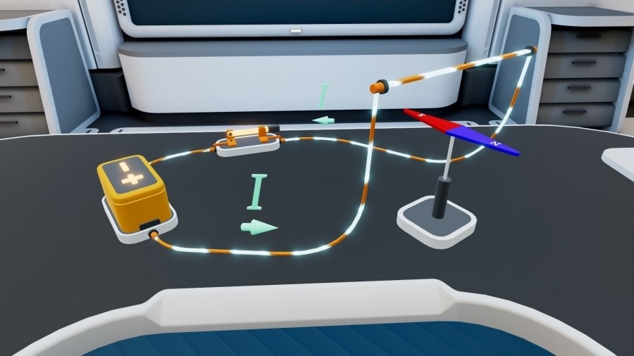 Включите VR-очки, откалибруйте контроллер нажав нижнюю кнопку на время до 10 секунд.Авторизуйтесь со своим логином и паролем. В списке материалов нажмите на папку Физика. Сборка цепей и выберите нужную задачу.
