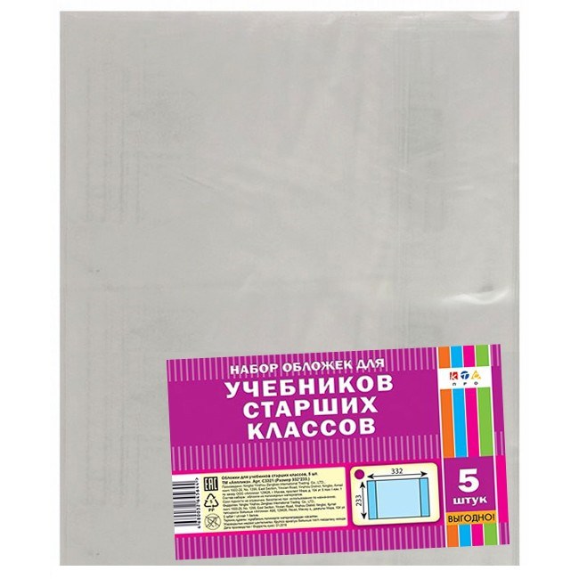 Набор обложек д/учебников 5шт 110 мкм 233х332мм С3321 80мкм