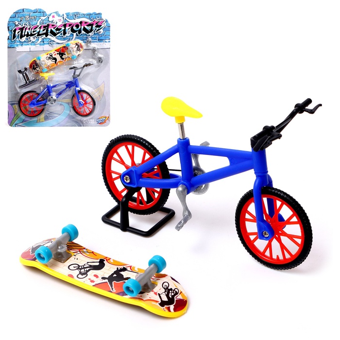 - В комплект входят фингерборд и фингербайк — уменьшенные версии скейтборда и велосипеда.