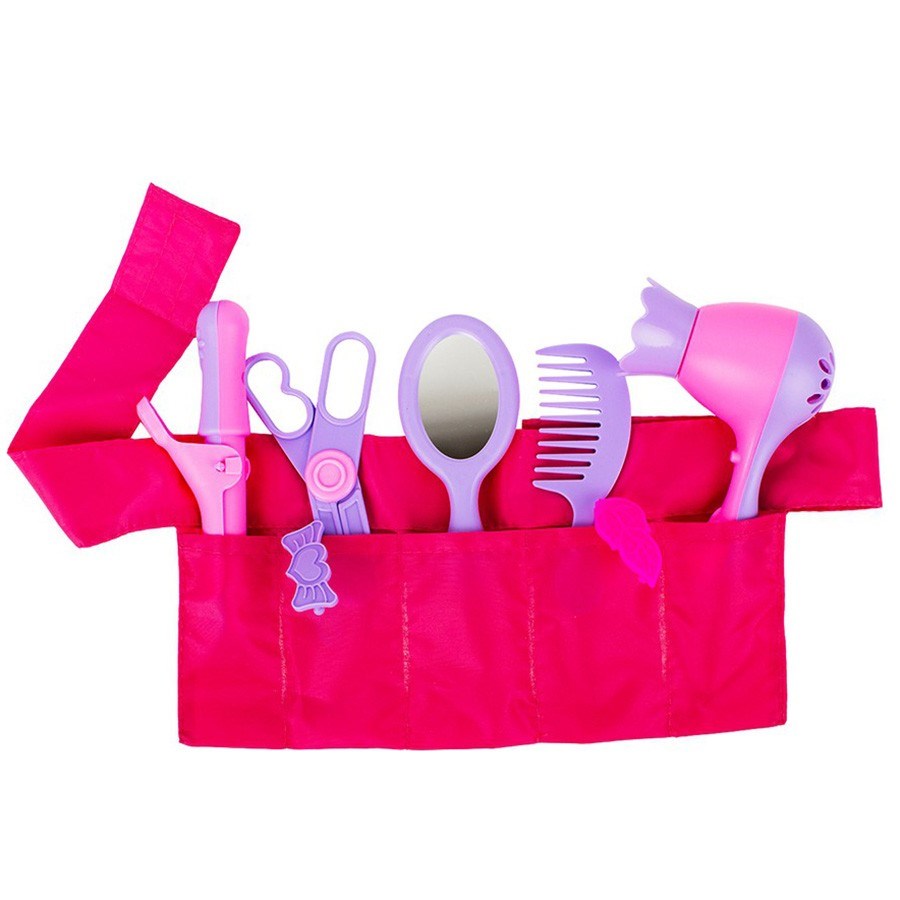 В этом наборе есть все для создания головокружительных причесок и сногсшибательных образов. В комплект входят расческа, плойка, фен, ножницы и две заколки в удобно сумке с несколькими карманами - все, как у настоящего парикмахера. Игра с таким набором поможет ребенку примерить на себя взрослую профессию, потренировать мелкую моторику, чувство вкуса и воображение.