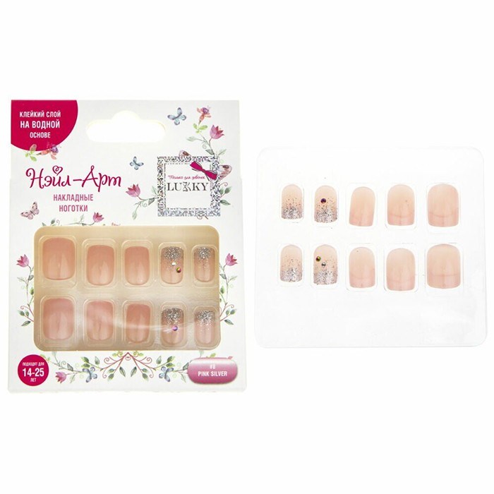 Набор Pink Silver 10 наклад.ногтей на клеевой основе Т21056 Lukky Нэйл-Арт