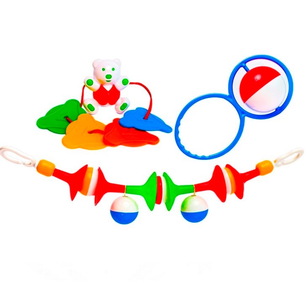 Комплектация: погремушка - подвеска - 1 шт, погремушка - 1 шт, прорезыватели - 4 шт, игрушка - 1 шт