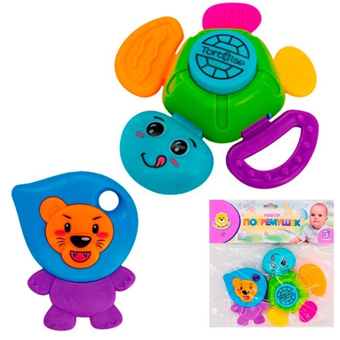 - на погремушке присутствуют забавные зверята;