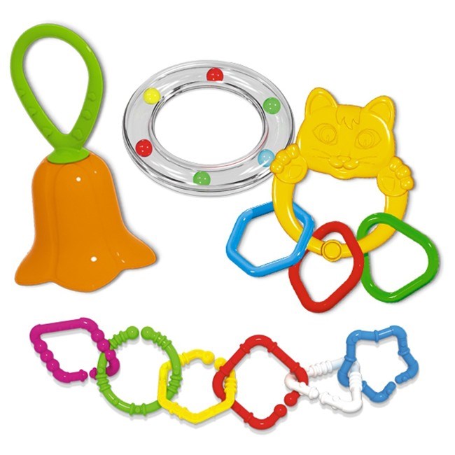 Погремушки – это первые игрушки малыша. Они необходимы ему для развития сенсорной и моторной сферы, что в свою очередь стимулирует развитие мозга. Для полноценного развития малышу нужны погремушки разных цветов, форм, с разными рукоятками. Потому наш набор идеально подходит для подарка ребенку.