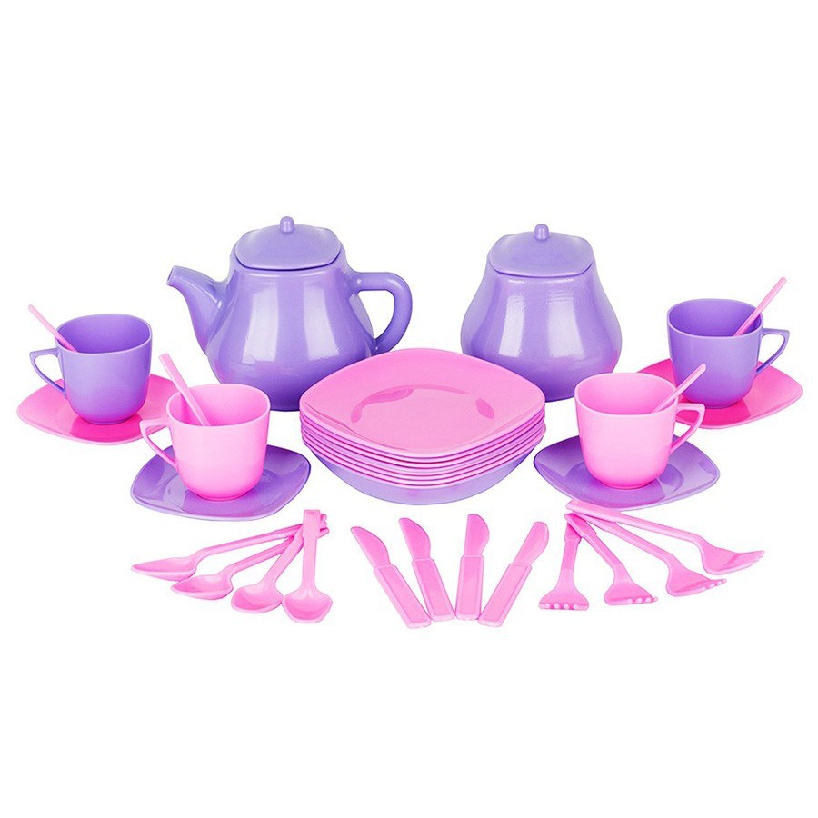 С набором игрушечной посуды "Мальвина" чаепитие с куклами и медведями станет еще более увлекательным. В набор входят чайник, сахарница, чашки, блюдца, тарелочки и столовые приборы, выполненные в сиренево-розовой цветовой гамме, которая придется по душе девочкам. Сервируя игрушечный стол, ребенок сможет не только весело провести время, но и познакомится с правилами этикета, разовьет аккуратность и узнает о правилах поведения за столом. Все элементы набора выполнены из качественного нетоксичного пластика и соразмерны детской руке.