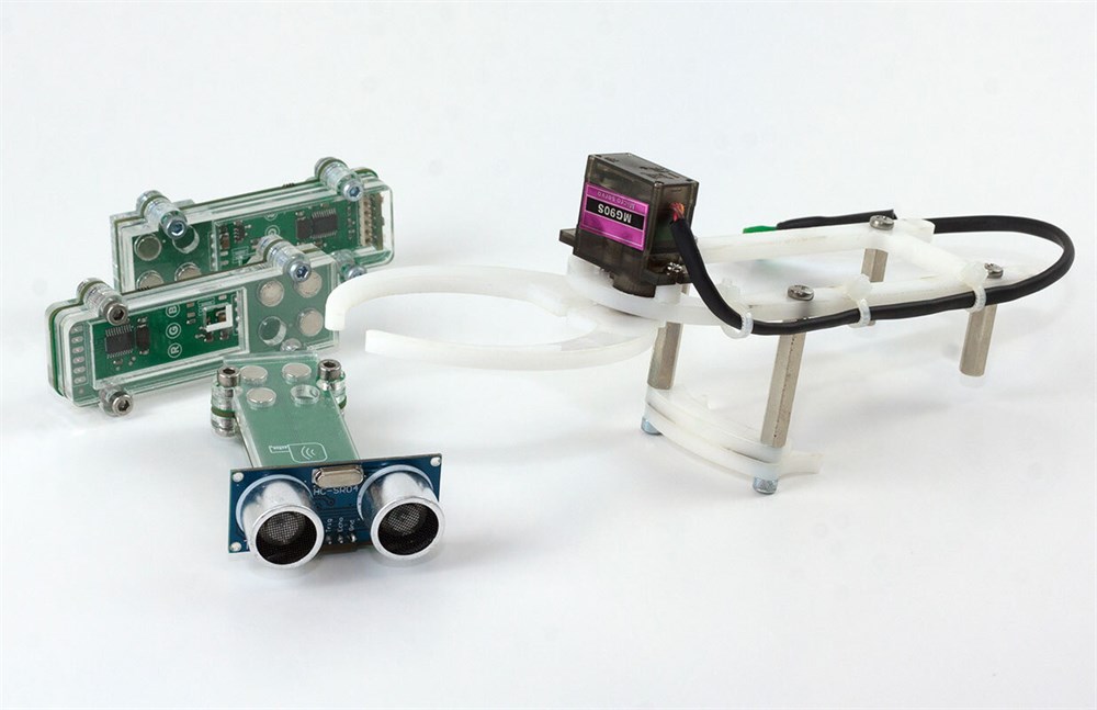 - Ультразвуковой датчик, подключаемый посредством магнитных контактных площадок. В комплект должны входить: магниты-контактов, плата с датчиком, корпус из акрила и металлических метизов.