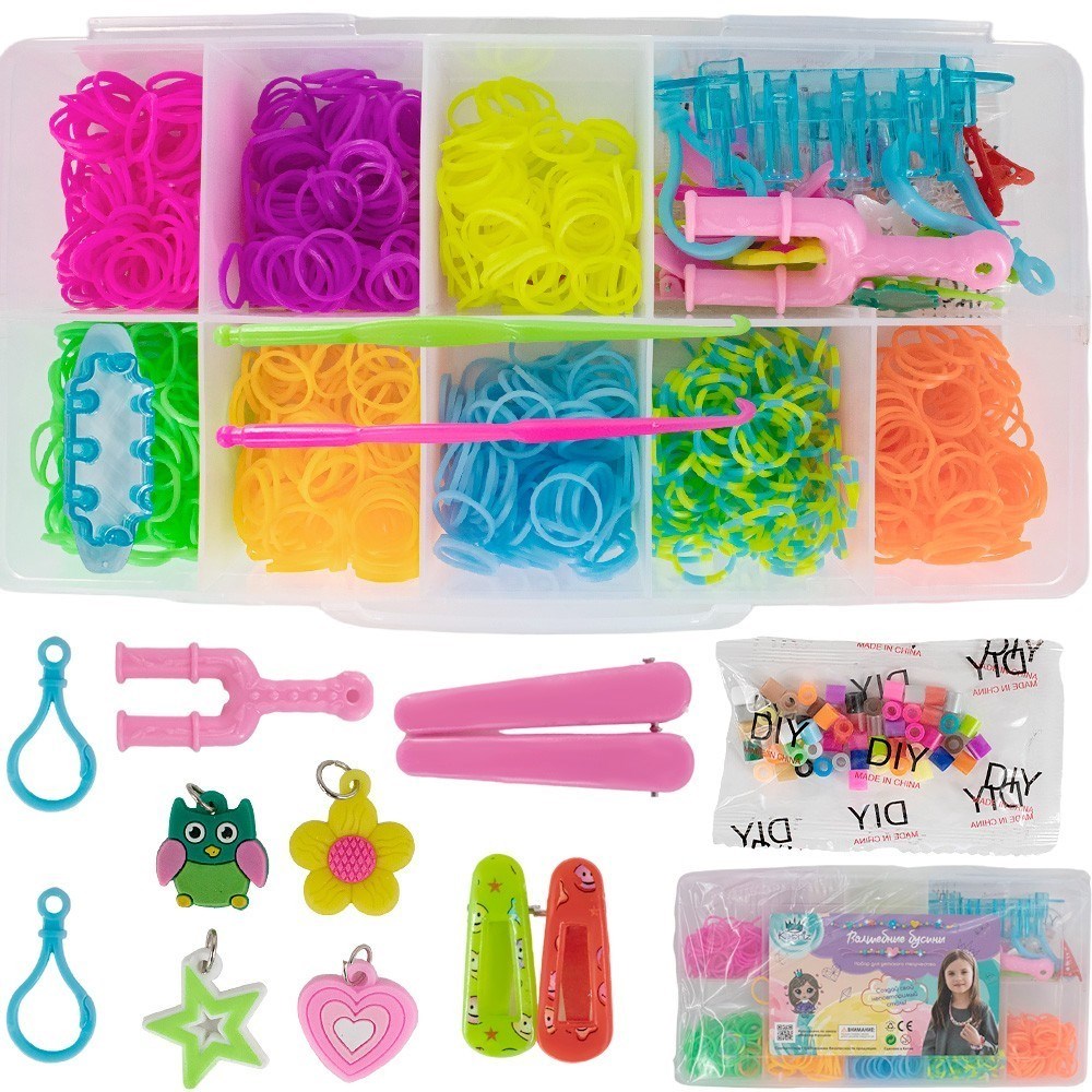 С набором разноцветных резинок для плетения Miss Kapriz ребенок сможет создать браслетики, колечки и подвески.