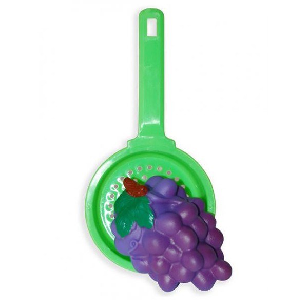 Яркий дуршлаг из качественной пластмассы и аппетитный виноград из мягкого ПВХ-пластизоля будущая хозяйка может использовать в разных сюжетных играх. Игры в дочки-матери, магазин нравятся не только мальчикам, но и девочкам.