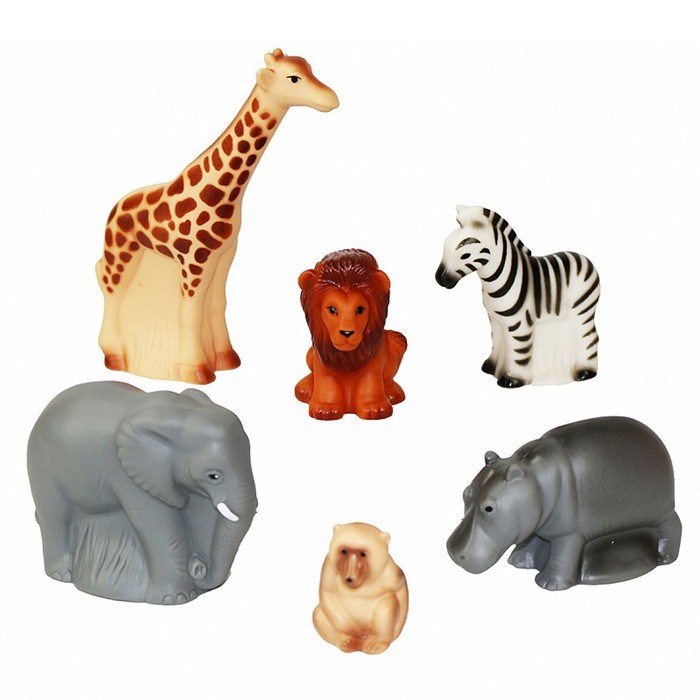 Размер изделия: слон - 7,8 см, лев - 8 см, жираф - 15 см, зебра - 8 см, бегемот - 6 см, бабуин - 4,7 см