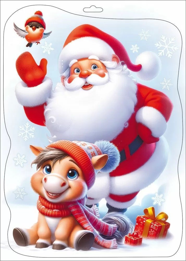 Наклейка двусторонняя "Дед Мороз и пони" 5.0001473