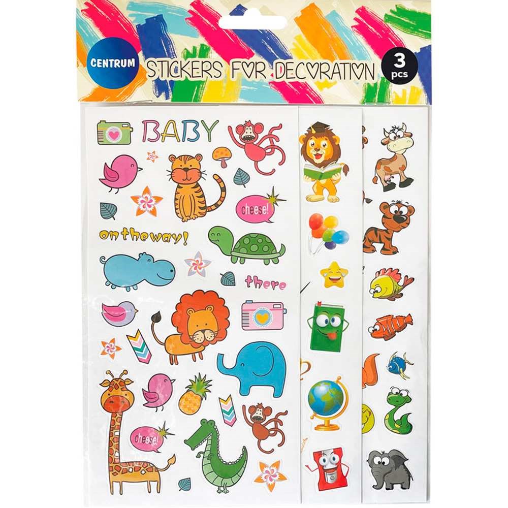 Наклейки декоративные, бумажные,3 шт 19x10см, 30x15мм, в ассортименте 89728