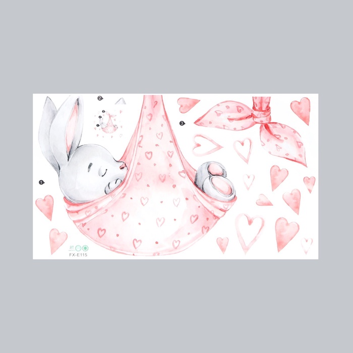 Наклейка интерьерная цветная «Зайка спит в пеленке», 35×60 см
