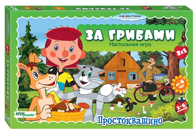 Настольная игра "За грибами" – две семейные игры по мотивам мультфильма «Простоквашино» в одной коробке.
