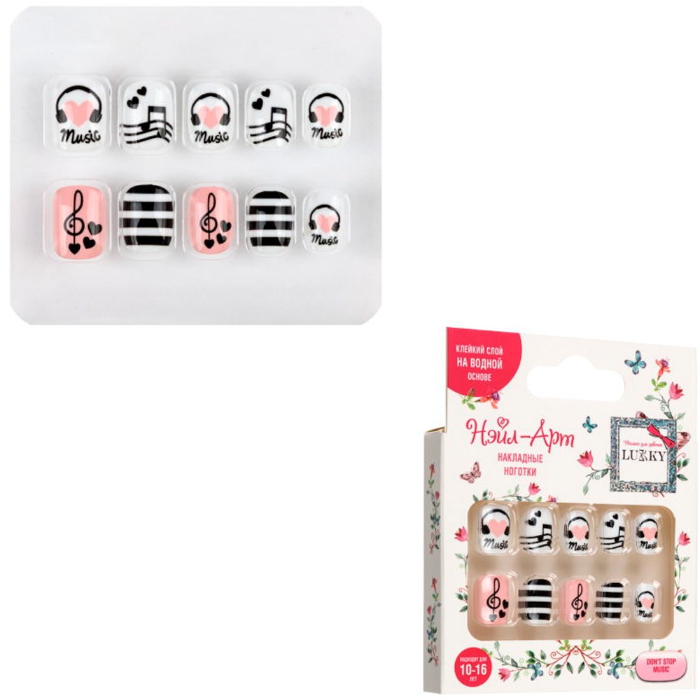 Ногти накладные Lukky Нэйл-Арт Don't Stop Music 10 наклад.ногтей на клеевой основе,10-16 лет Т26639