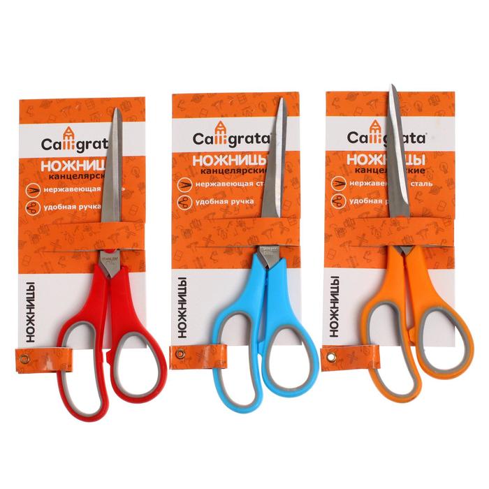 УЦЕНКА Ножницы канцелярские 21 см, ручки пластиковые с резиновыми вставками, МИКС