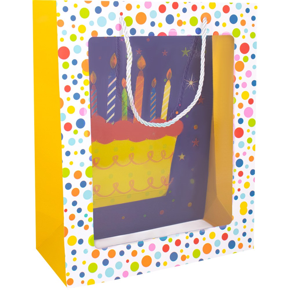 Пакет 32х26х12 см с прозрачным окошком Торт со свечами 141V-963