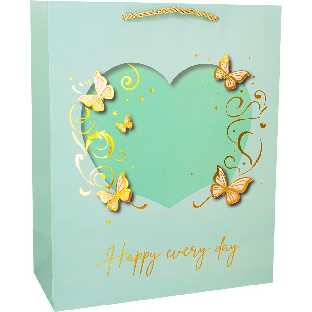 Пакет 32х26х12см сердце с бабочками 141V-979