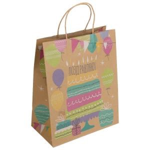Пакет подарочный крафт l,с днем рождения,140 гр/м2 ЧУДО ПРАЗДНИК