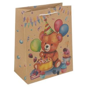 Пакет подарочный крафт м,мишка,140 гр/м2 ЧУДО ПРАЗДНИК