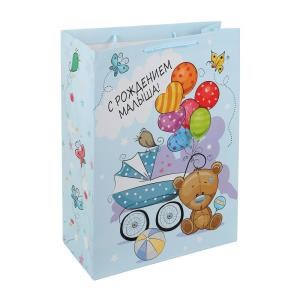 Пакет подарочный МАТОВЫЙ l, с рождением малыша,140 гр/м2 ЧУДО ПРАЗДНИК