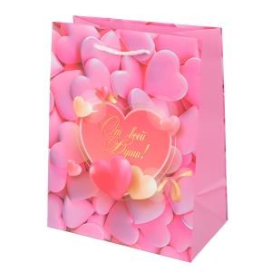 Пакет подарочный МАТОВЫЙ m,сердца,140 гр/м2 ЧУДО ПРАЗДНИК